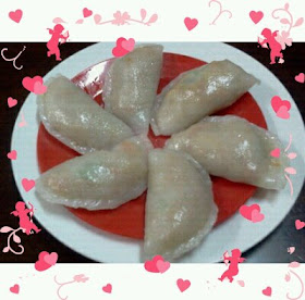 折成貝殻狀, 排列在盤子上, 放入蒸籠以大火蒸8分鐘.